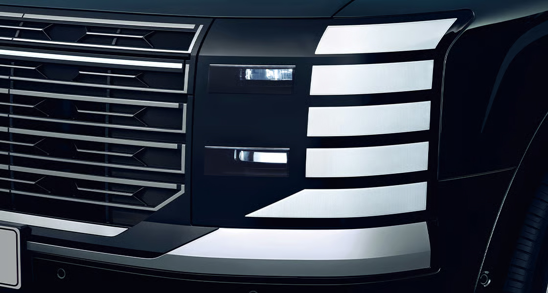 تقدّم باليسيد مفهومًا جديدًا لأناقة السيارة الرياضية المتعددة الاستخدامات (SUV) بأبعادها الجريئة وتصميمها الأنيق. تبرز الخطوط العمودية والأفقية في الأمام والجانب والخلف، بالإضافة إلى هيكلها العريض وقاعدة عجلاتها الكبيرة، ثباتها وحضورها.