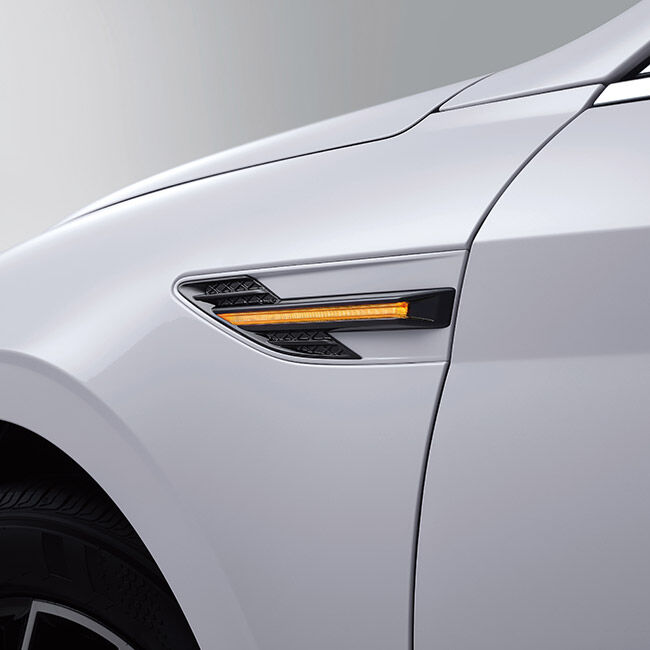 يمنحك التصميم الجذاب للواجهة الأمامية صورة ديناميكية واسعة تنسجم فيها المصابيح الأمامية وشبكة المبرِّد وفتحات دخول الهواء معًا. يمتد مصباح الأفق السلس الأنيق على الهيكل الأمامي مضيفًا لمسة عصرية حديثة.