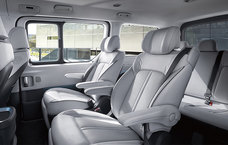 STARIA Premium’s flexible seating multiplies the fun factor, especially when traveling with children on long-distance trips. The 2nd-row swiveling independent seat rotates 180º degrees to allow face-to-face conversation among rear seat passengers and 90º to promote easier entry and egress.